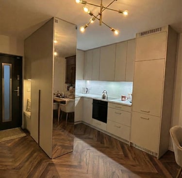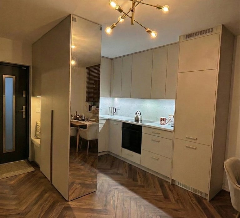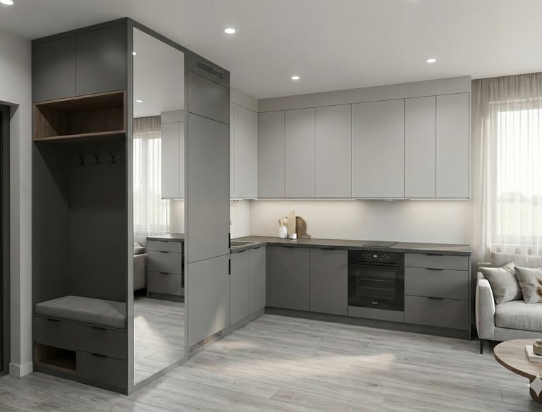 Jak oddzielić kuchnię od wejścia w małym domu za pomocą zabudowy meblowej