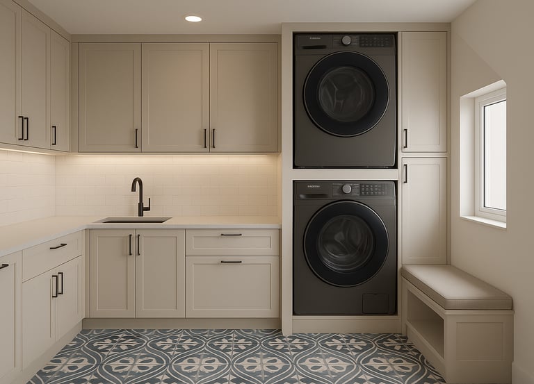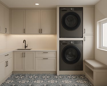 Pomieszczenie gospodarcze nie musi być nudne ani zagracone. Tworzymy ergonomiczne i estetyczne zabudowy do pralni oraz małych przestrzeni pomocniczych, które ułatwiają codzienne obowiązki. Proponujemy funkcjonalne szafki pod pralkę i suszarkę, blaty robocze do składania ubrań, szafki na detergenty, wysuwane kosze na pranie czy miejsce do przechowywania sprzętu czyszczącego. Każdy element projektu jest przemyślany i dopasowany do wielkości oraz układu pomieszczenia. Oferujemy szeroki wybór materiałów odpornych na wilgoć i łatwych w czyszczeniu. Dzięki indywidualnemu podejściu stworzymy pralnię, która nie tylko świetnie działa, ale też wygląda estetycznie i spójnie z resztą wnętrza. To przestrzeń, która może być zaskakująco wygodna i funkcjonalna.